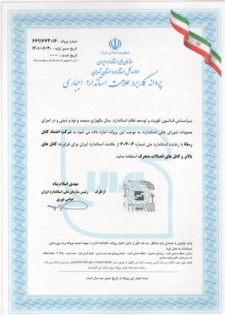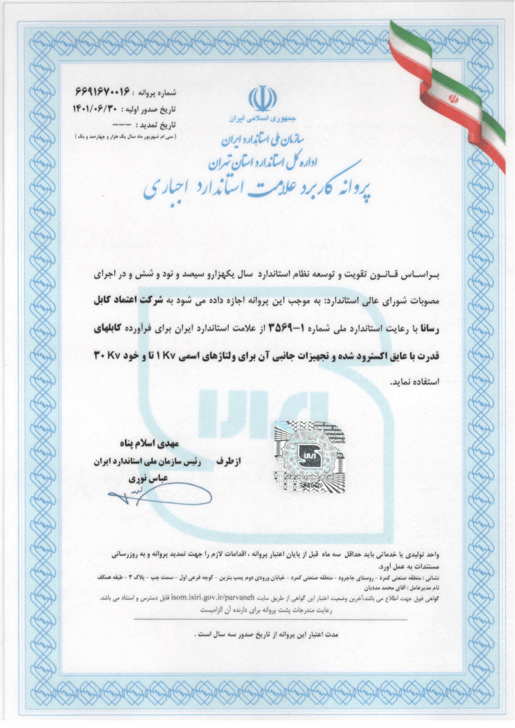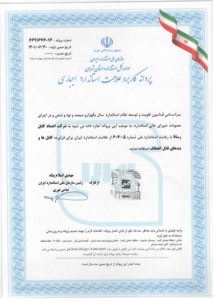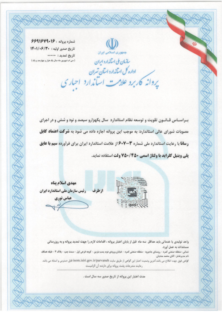 ما مجموعه خود را سال1398 در راستای تولید انواع سیم و کابل در منطقه صنعتی کمرد تهران ثبت و راه اندازی کردیم و با تلاش های فراوان و بکارگیری دانش فنی و ماشین آلات به روز و آزمایشگاه کنترل کیفیت مجهز و با استفاده از تجارب مهندسین در این حوزه و پرسنل متخصص در سال 1400 گواهینامه استاندارد ملی ایران را اخذ نمودیم .